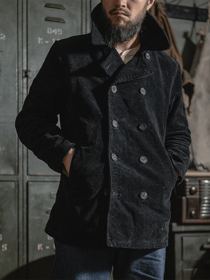 Men's Stylish Double With Pocket Design Breasted Casual Corduroy Coat