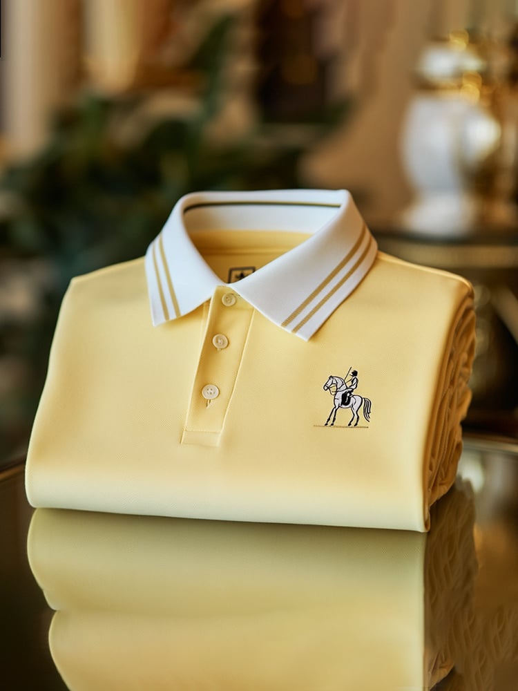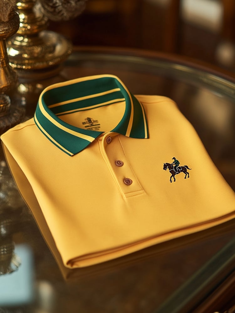 Men's Casual Yellow Logo Button Short Sleeve Polo Shirt
