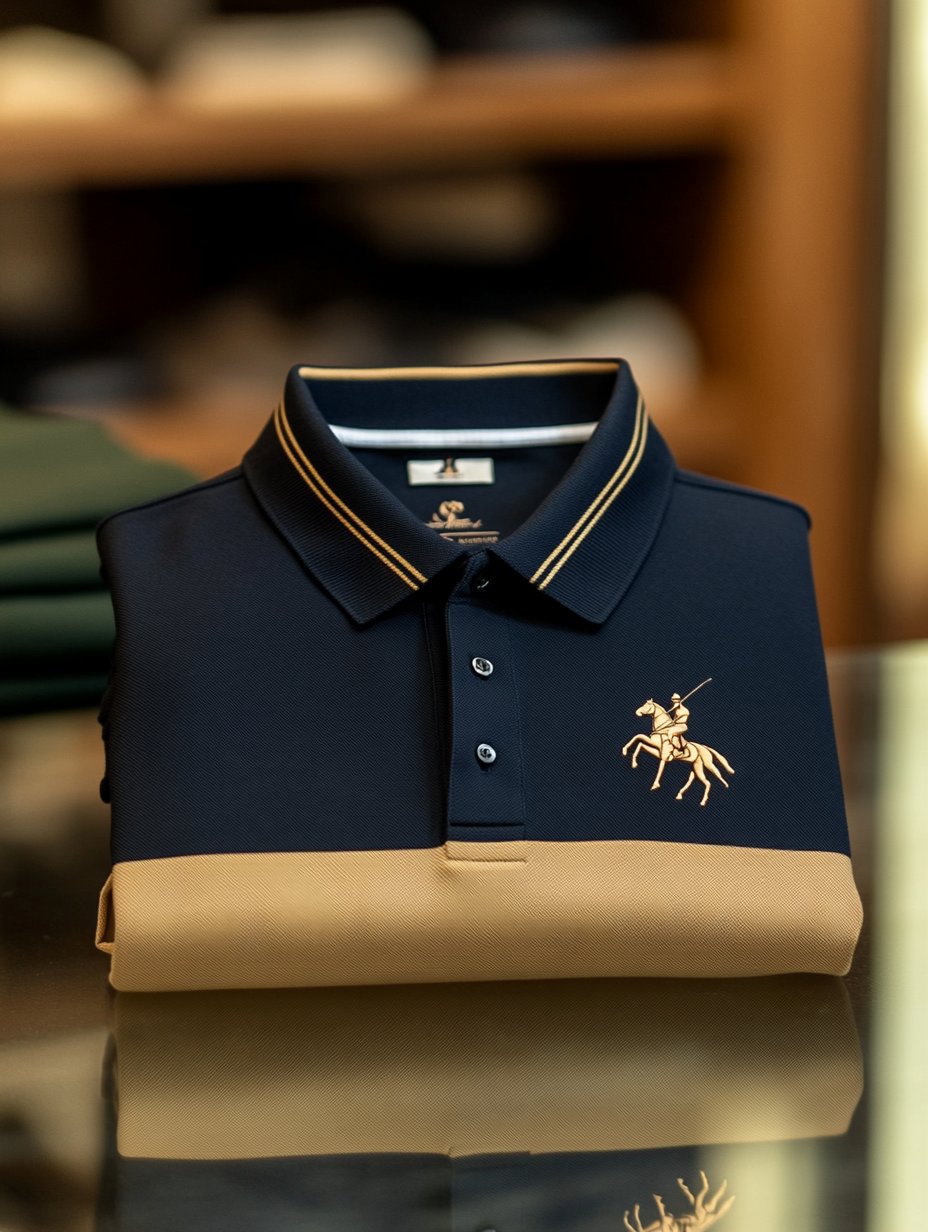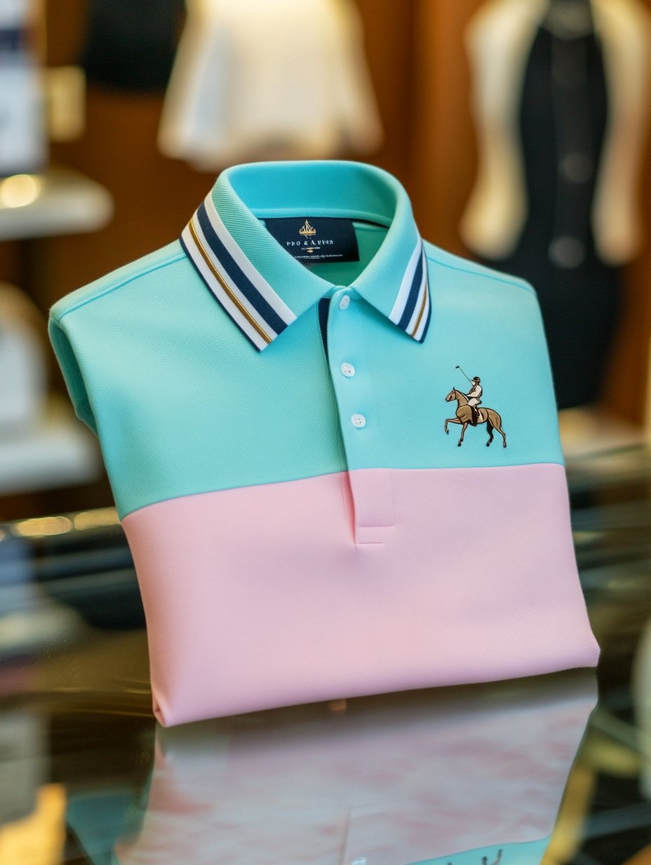 Men's Classic Business Contrast Colorblock Logo Button Short Sleeve Polo Shirt
