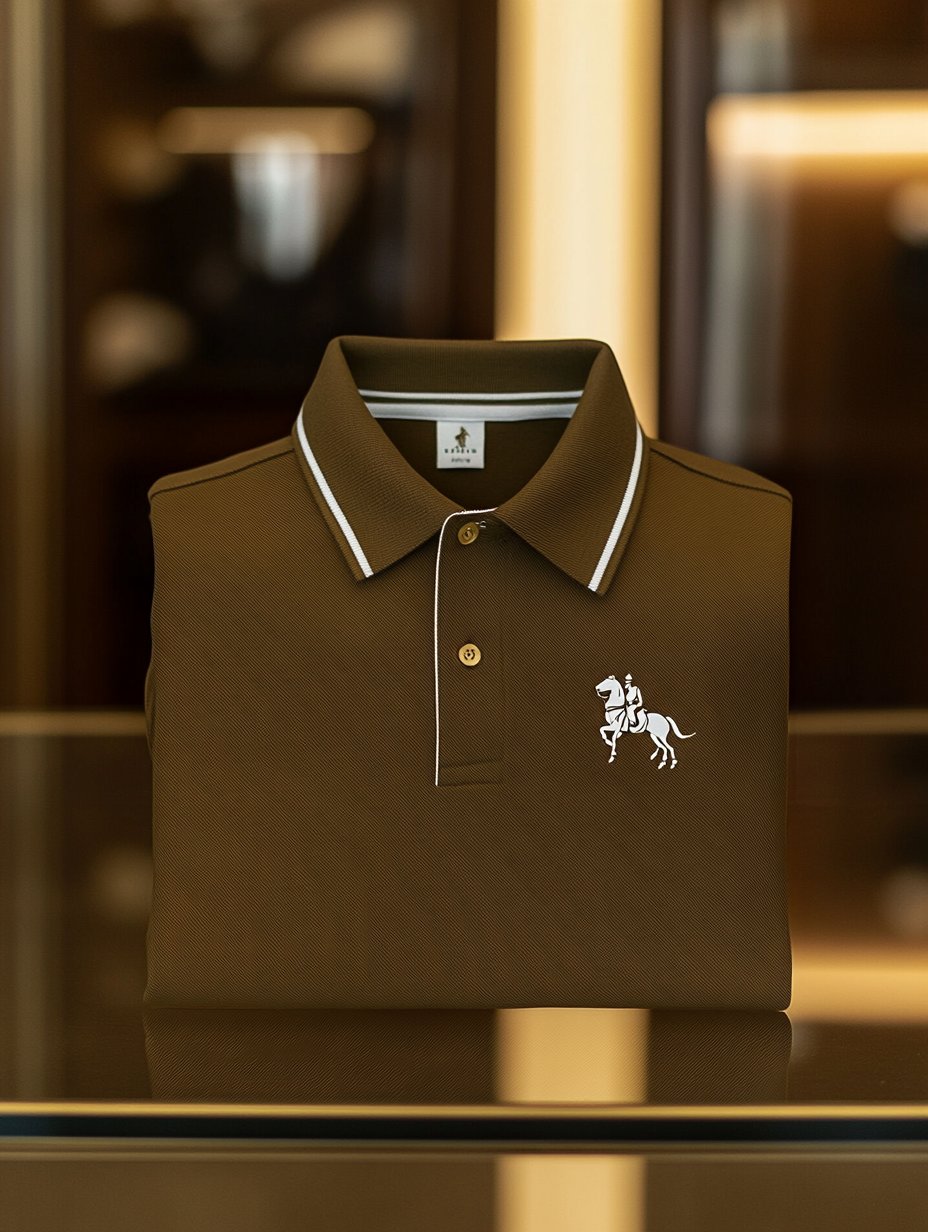 Men's Smart Casual Khaki Logo Button Short Sleeve Polo Shirt