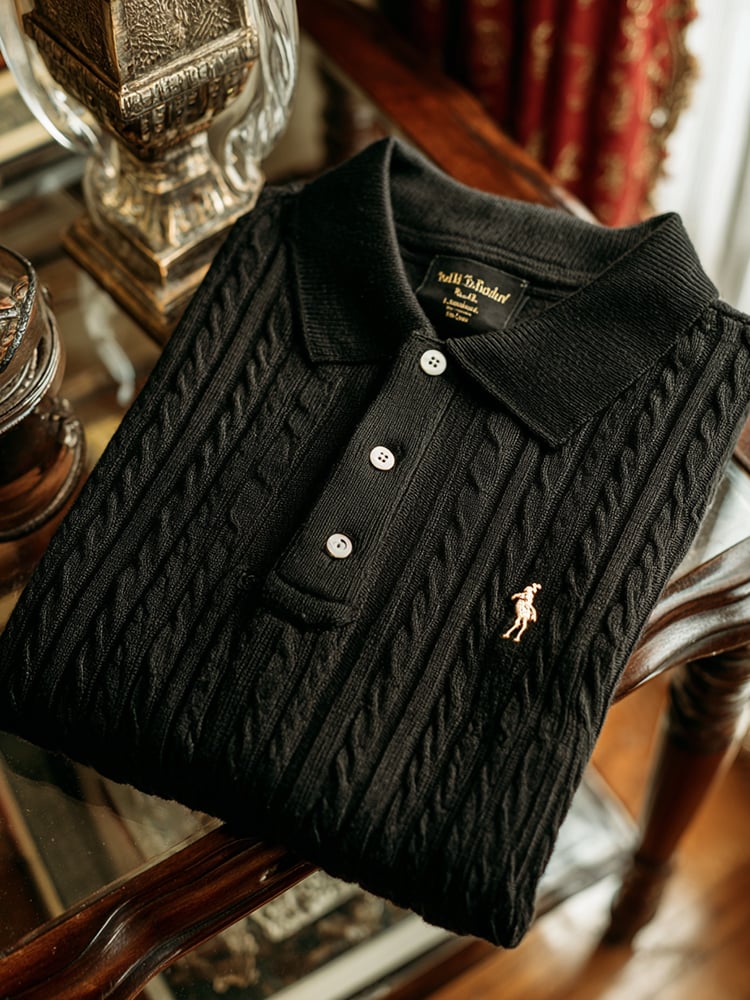 Men's Classic Business Casual Short Sleeve Cable Texture Polo Shirt
