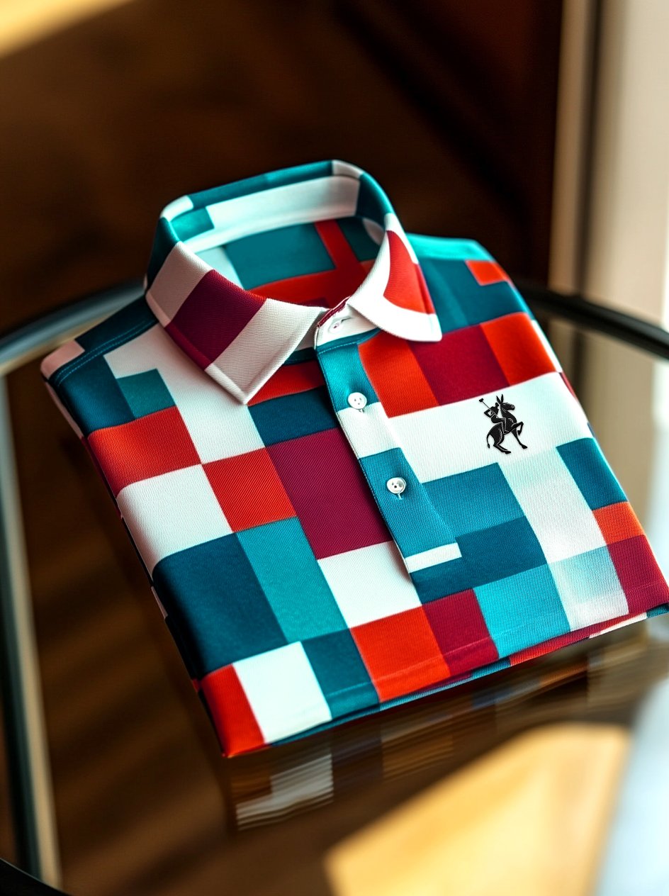 Men'S Casual Color Block Print Polo Shirt Short Sleeve