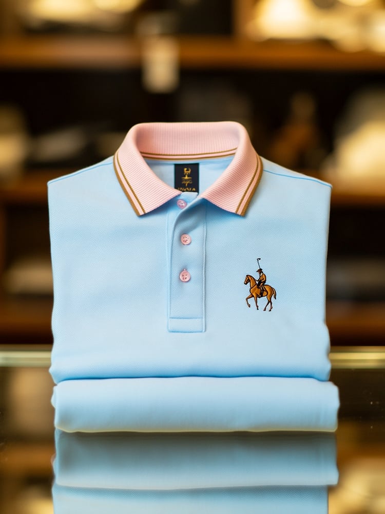 Men's Smart Casual Blue Logo Button Short Sleeve Polo Shirt