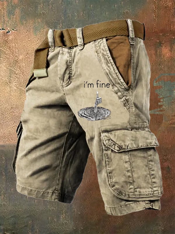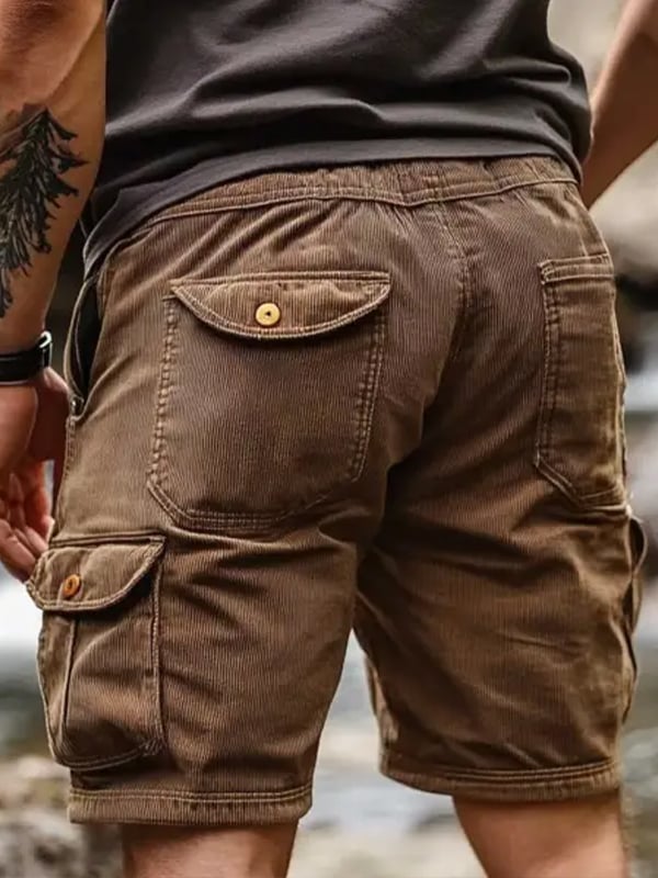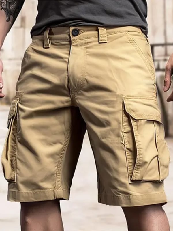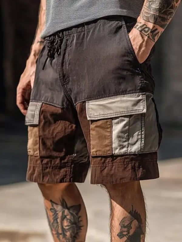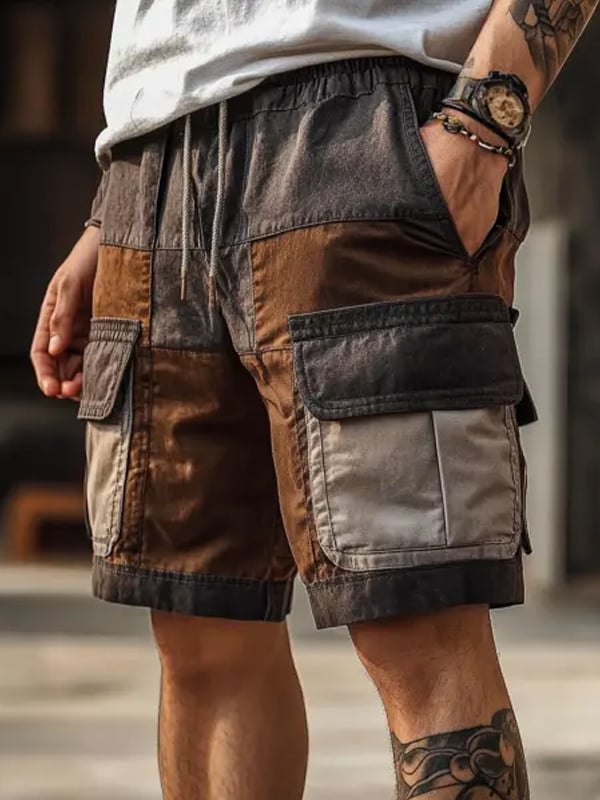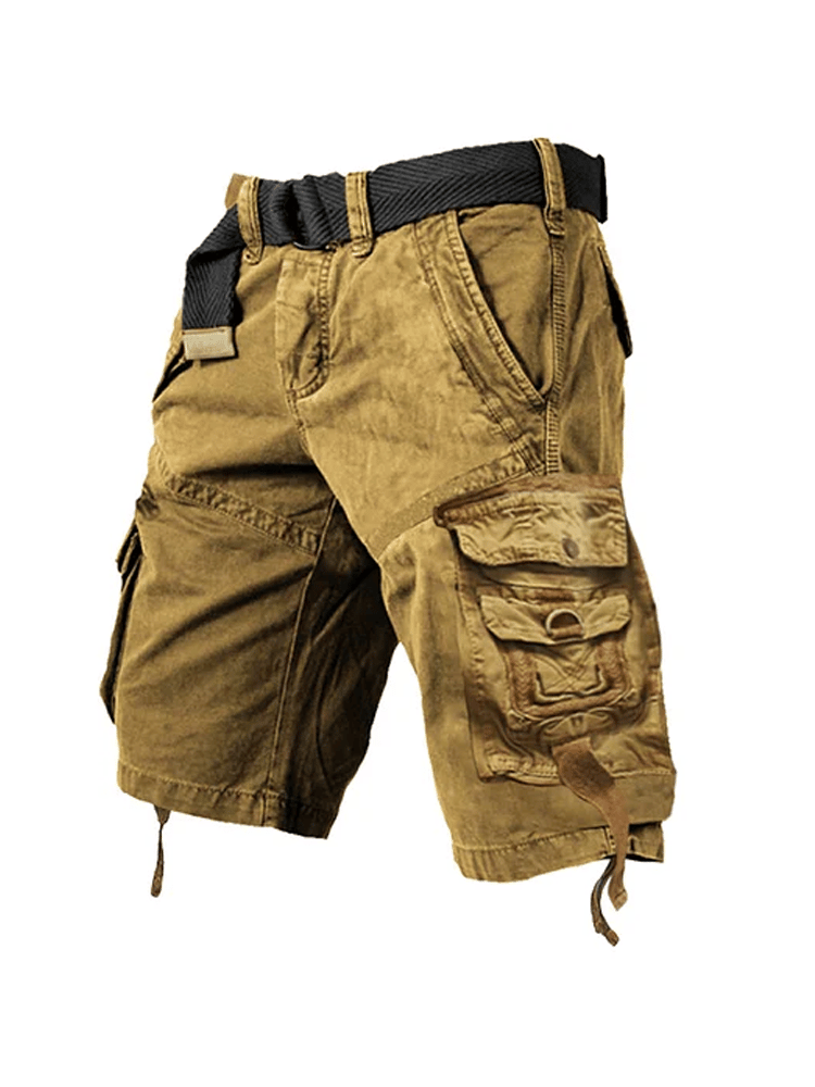 Men's Vintage Outdoor Pocket Functional Washed Distressed Leather Label Work Shorts