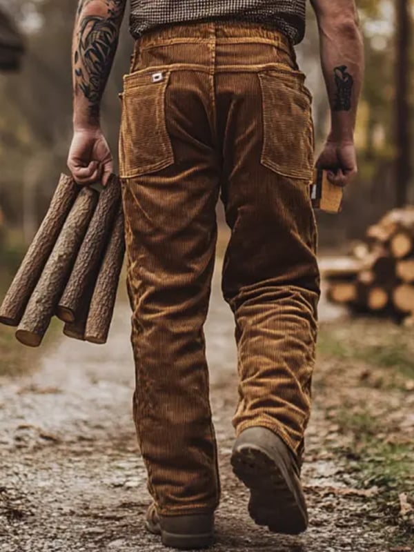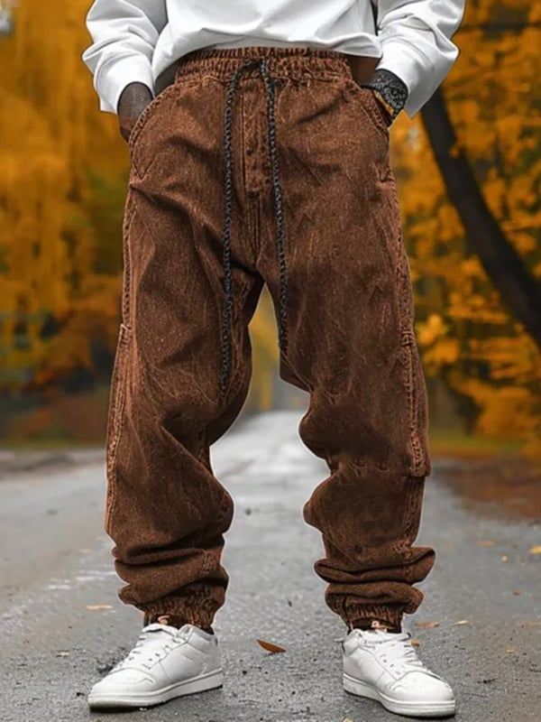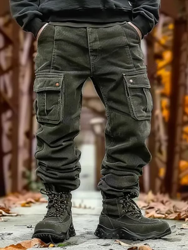 Men's Casual Solid Color Outdoor Corduroy Wide-Leg Trousers