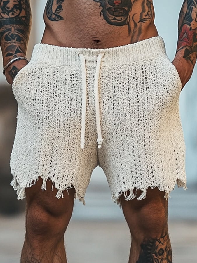 Men'S Lightweight Knitted Beveled Vacation Casual Shorts