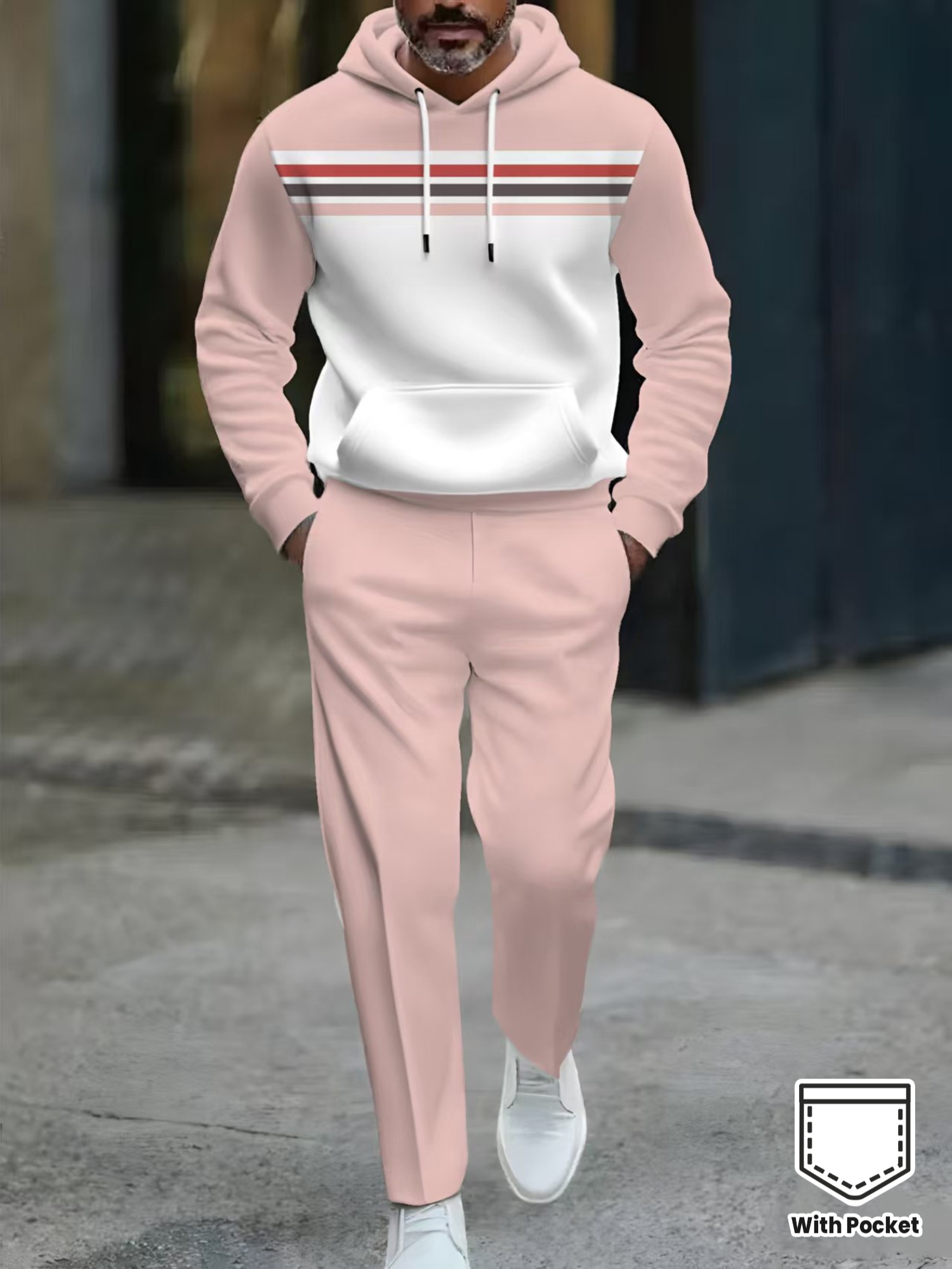 Men's Casual Color Matching Printed Hooded Long Sleeved Trousers Two-Piece Set