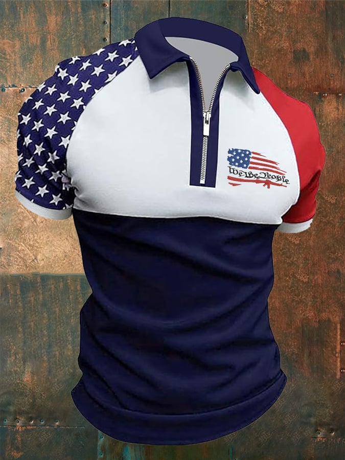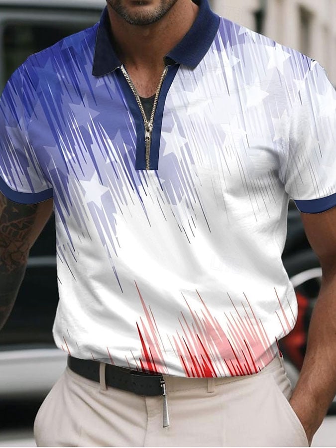 Men's Casual Business Zipper Short Sleeve Polo Shirt