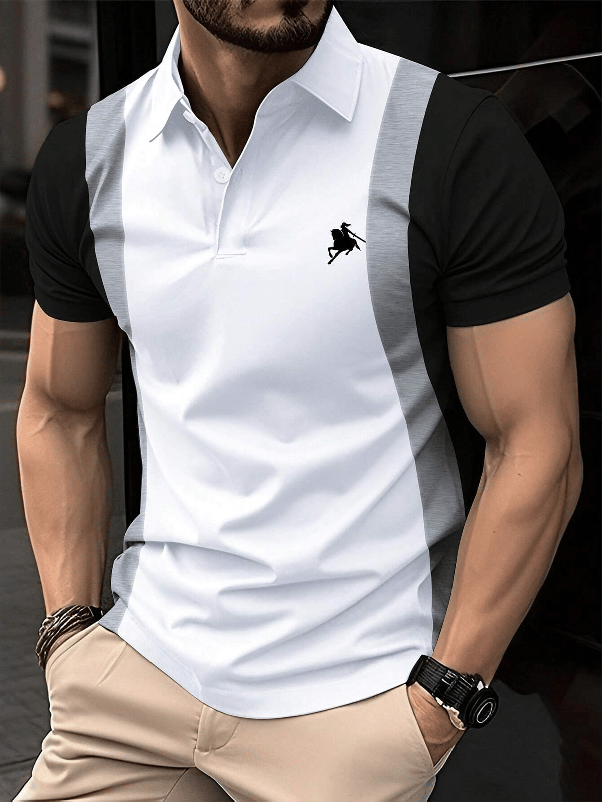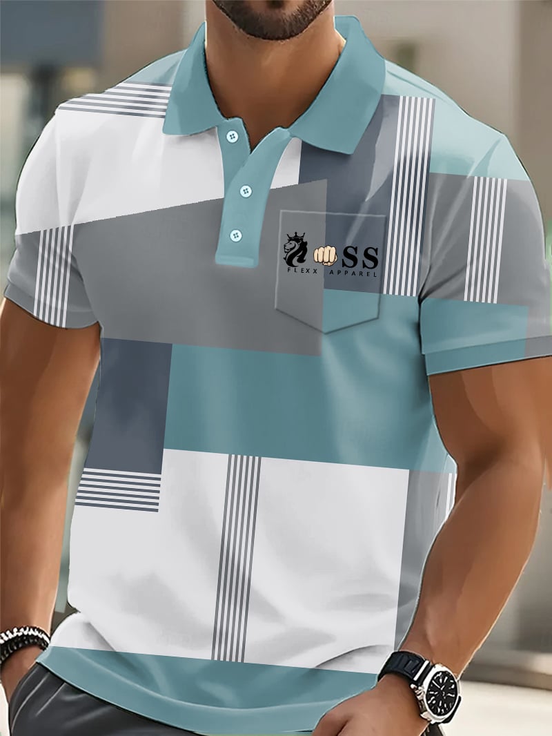 Men's Casual Business Abstract Geometric Contrast Color Polo (With Pockets)