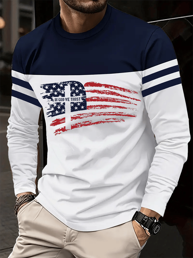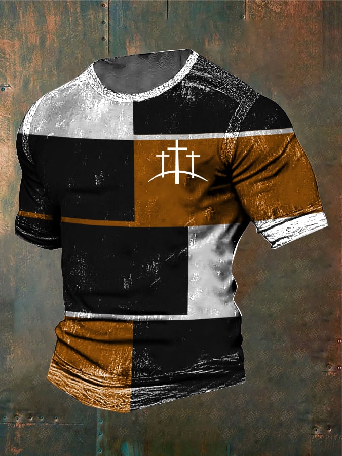 Men'S Casual Colorblock Striped Graphic T-Shirt