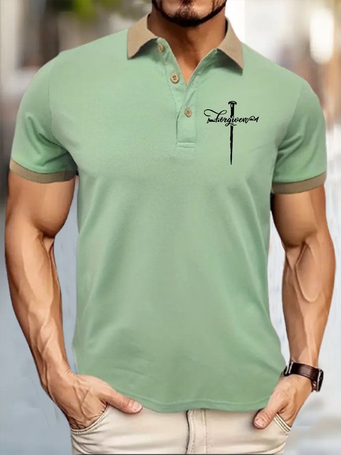 Men's Stylish Letter Print Casual Polo Shirt