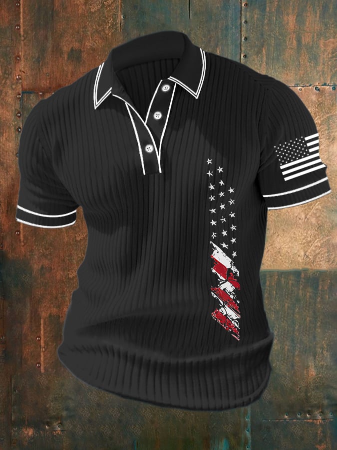 Men's Letter Stripe Printed Pullover Casual Polo Shirt