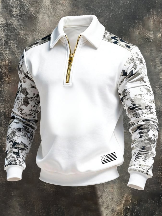 Men's Retro Geometric Quarter Zip Fleece Neck Sweatshirt