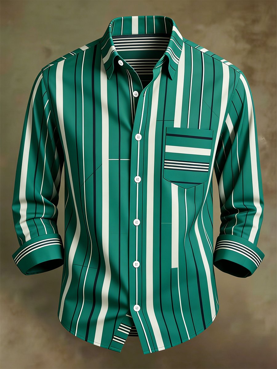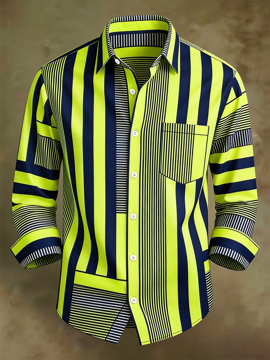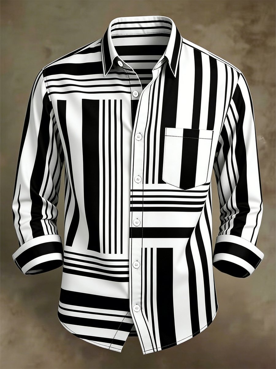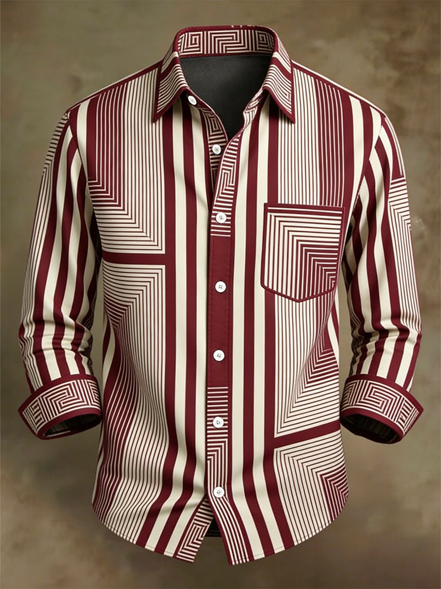 Men's Luxury Retro Contrast Pattern Long Sleeve Shirt