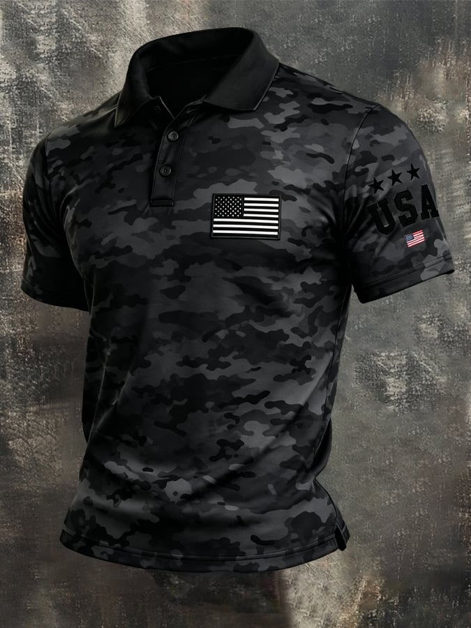 Men's Retro Patriot Color Block Polo Collar Short Sleeve