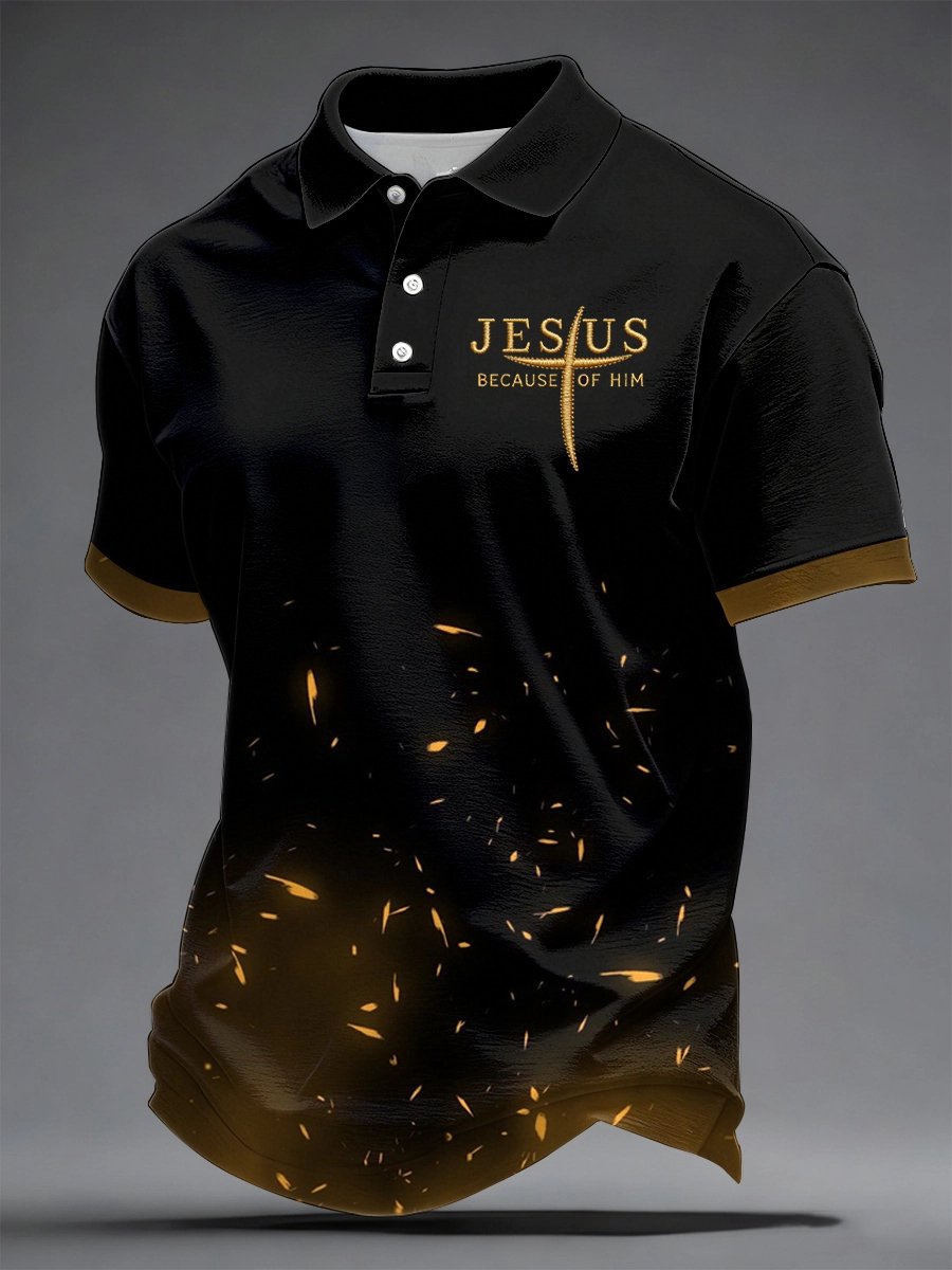 Men's Jesus Because Of Him Print Polo Shirt