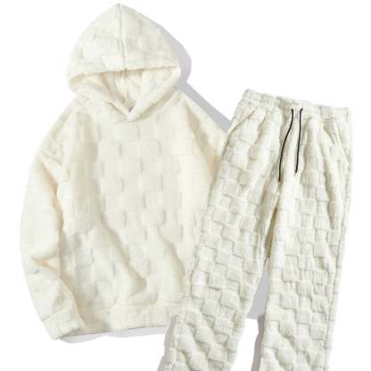 Designed with a plush waffle pattern made to keep you cozy, this hoodie and pant combo offers the ultimate relaxation, making sure you look your best even if you are just lounging at home.