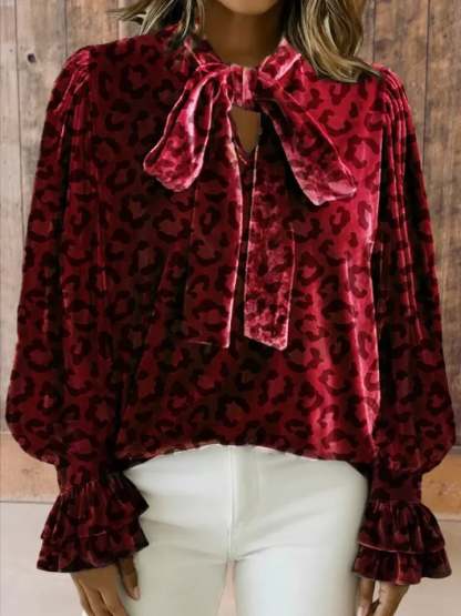 Vintage-Style Lace-Up Velvet Christmas Shirt