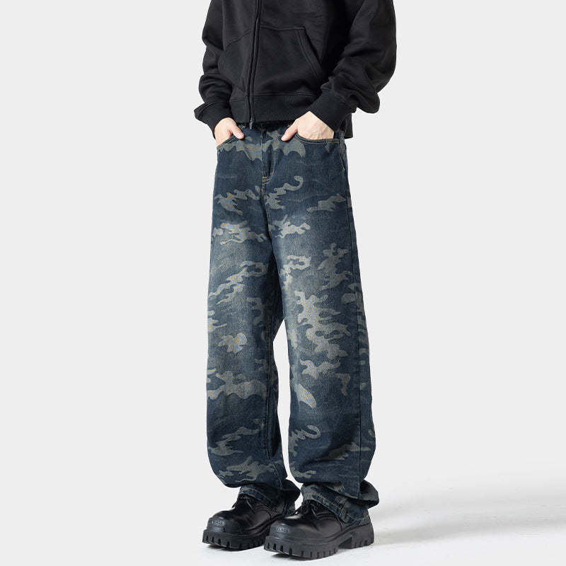 Blending camo with vintage-washed denim, these jeans are built for those who like to keep it different. A relaxed fit keeps them comfortable, while the bold design sets them apart.