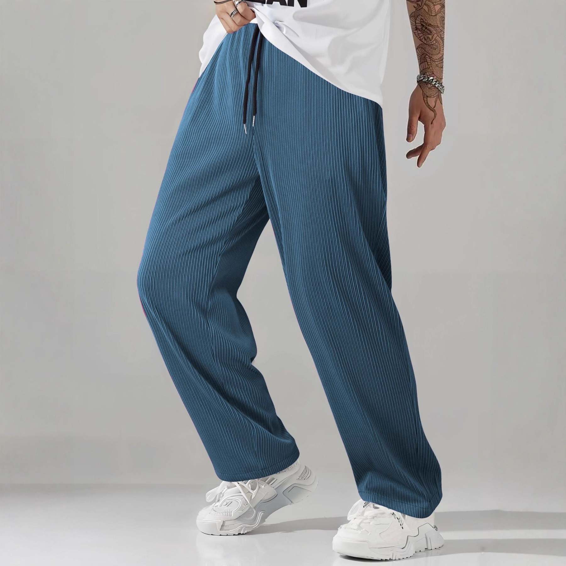 Crafted from a vibrant cotton blend that moves with you, these pleated trousers feature an adjustable drawstring waist and neon finish to ensure you catch every eye.
