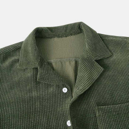 - Button-up polo-style shirt