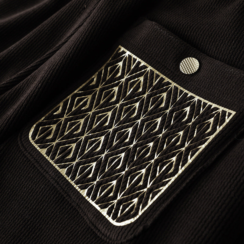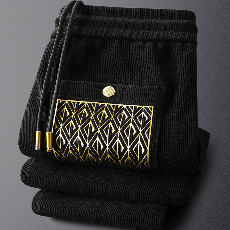 Woven from thick corduroy that feels soft to the touch, these relaxed pants feature a unique gold-embroidered pocket to turn a cozy essential into a standout piece for your weekend rotation.