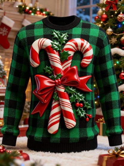 Men's Candy Cane Print Ugly Christmas Sweater
