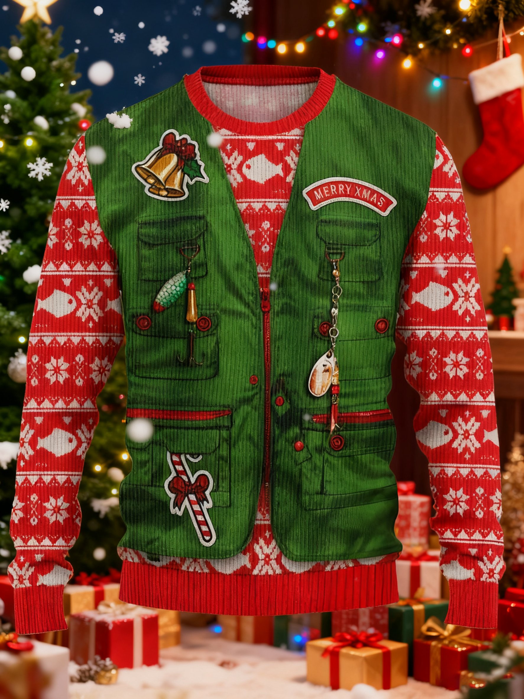 Men's Two Fake Pieces Print Ugly Christmas Sweater