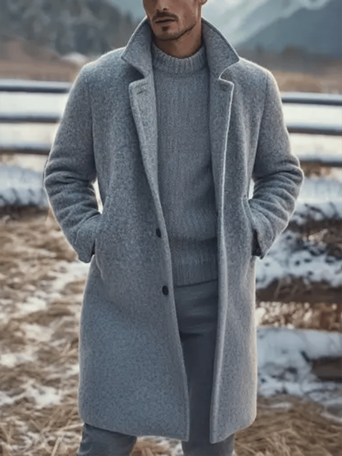 Men's Vintage Wool Lapel Collar Mid-Length Coat Jacket