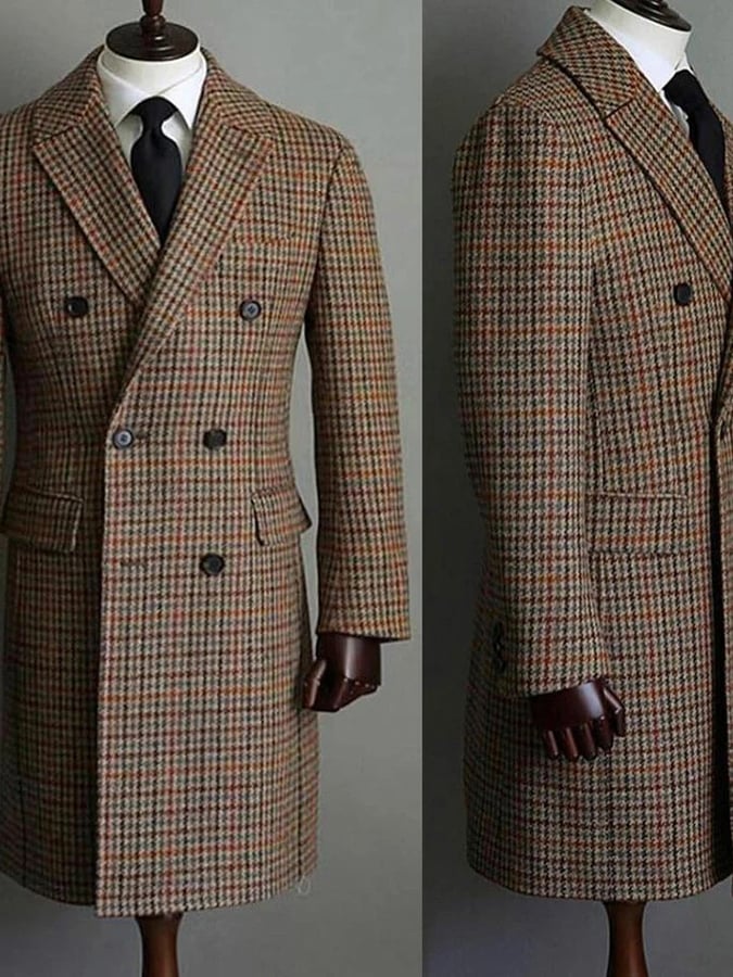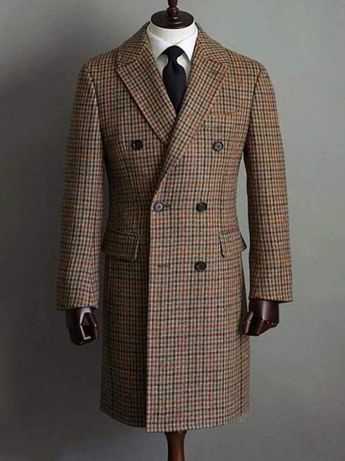 Classic Pointed Lapel Double-Breasted Slim Fit Wool Coat