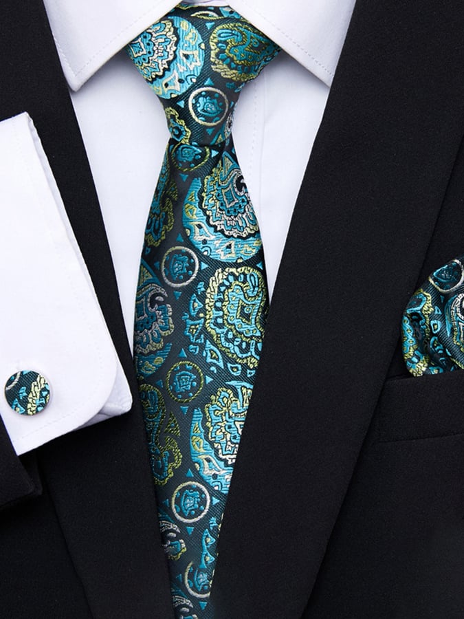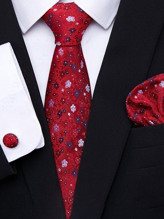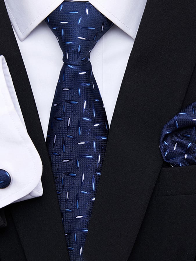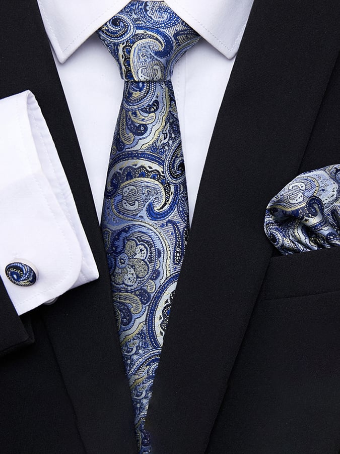 Set includes tie, square scarf, cufflinks