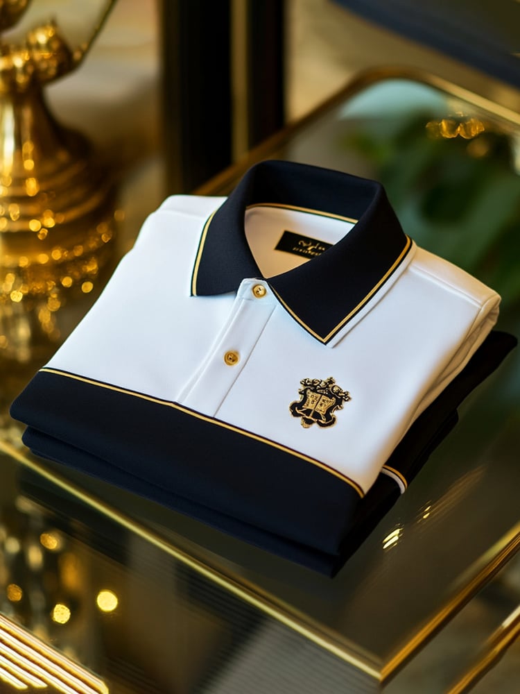 Men's Business Casual Logo Button Short Sleeve Polo Shirt