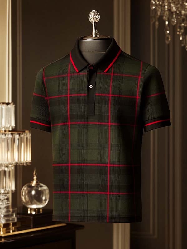 Men's Business Casual Plaid Button Short Sleeve Polo Shirt