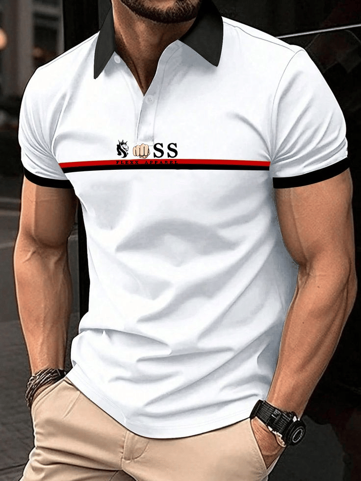 Men's Business Logo Button-Down Short Sleeve Polo Shirt