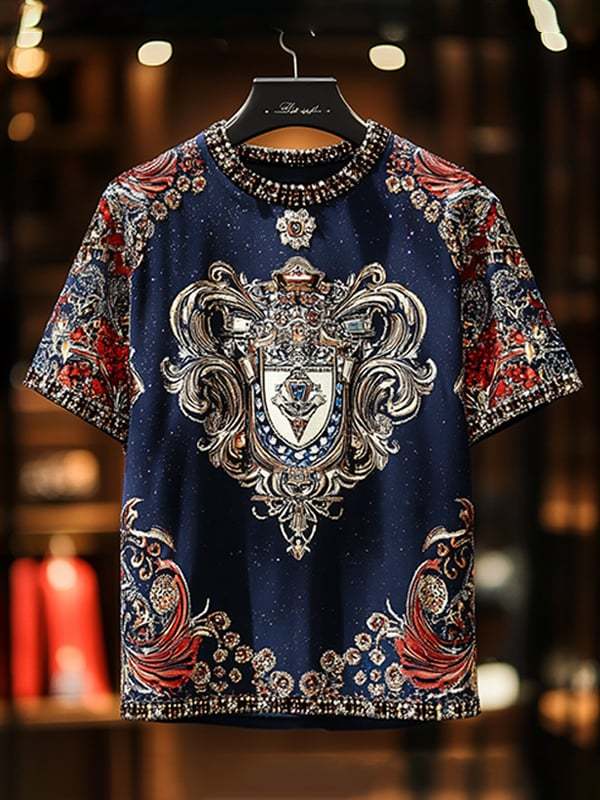 Men's Business Luxury Printed 100% Cotton Short Sleeve T-Shirt