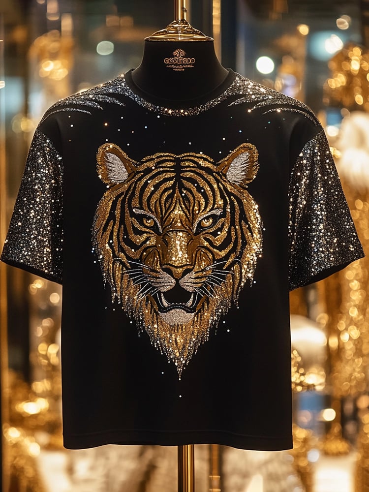 Men's Business Tiger Print Short Sleeve T-Shirt
