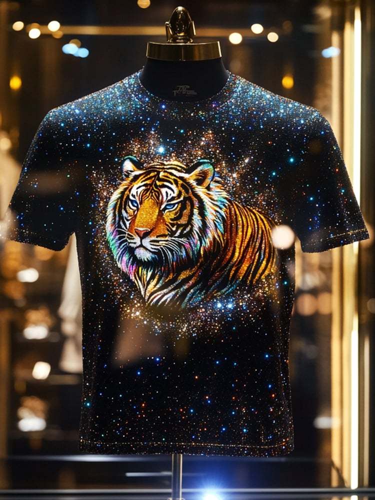 Men's Business Tiger Print Short Sleeve T-Shirt