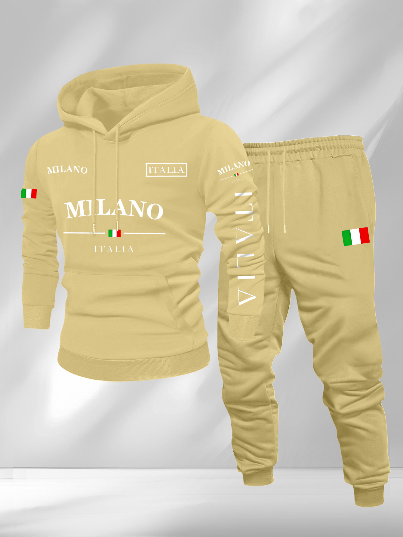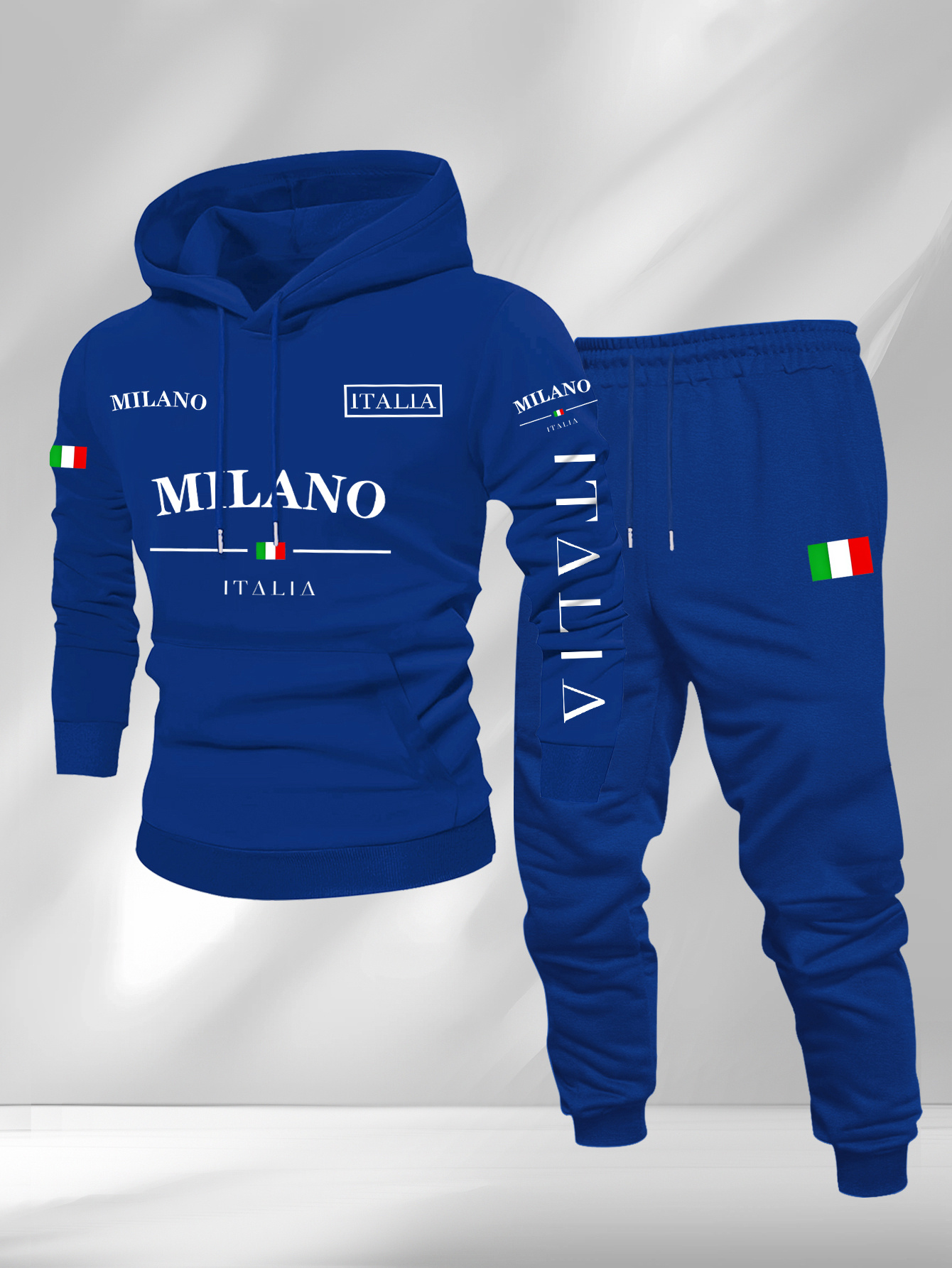Men's Casual Color Matching Printed Hoodies Long Sleeved Sweatshirts & Sweatpants Two-Piece Set