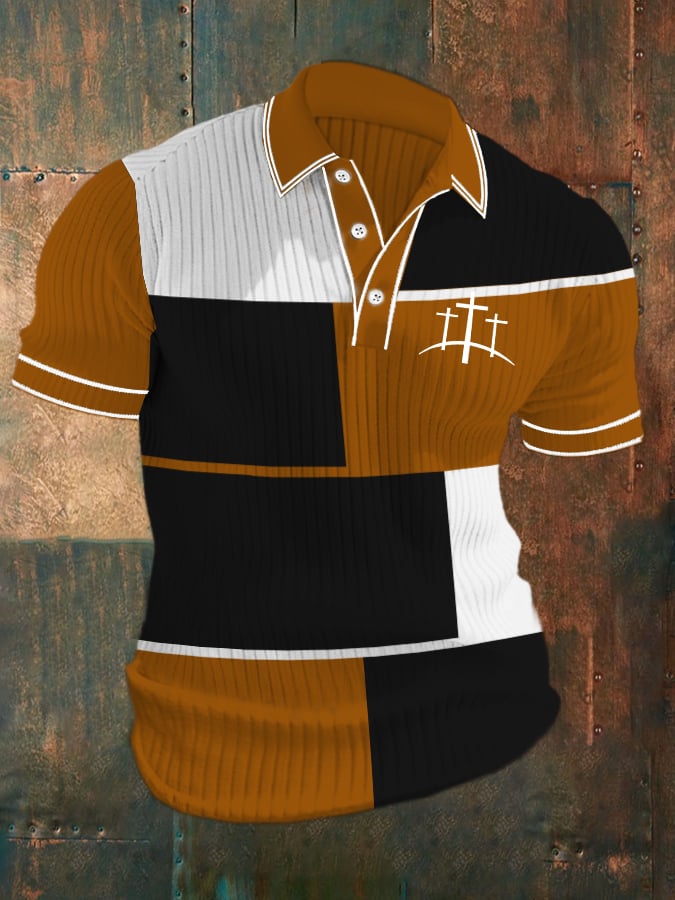 Men's Casual Contrast Color Faith Knitted Jacquard Polo