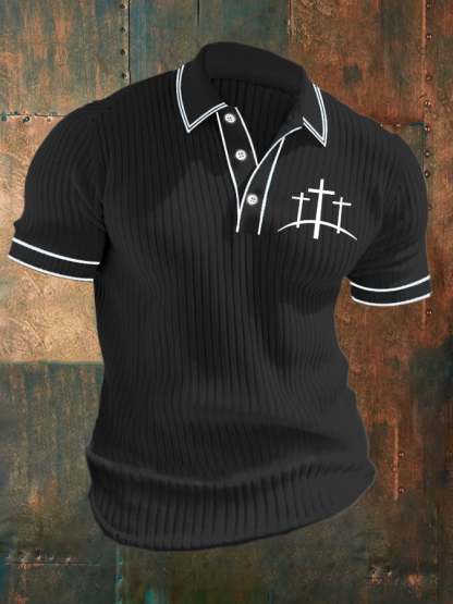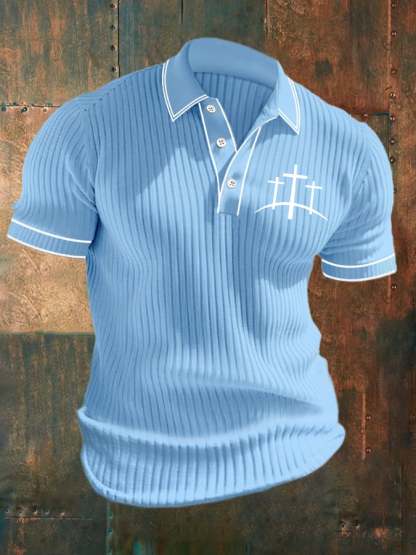 Men's Casual Contrast Color Faith Knitted Jacquard Polo