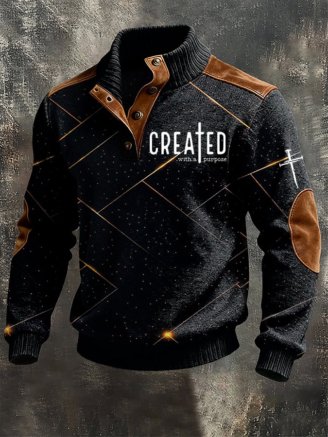 Men's Casual Retro Cross Color Block Print Long-Sleeve Sweatshirt-Fast Shipping