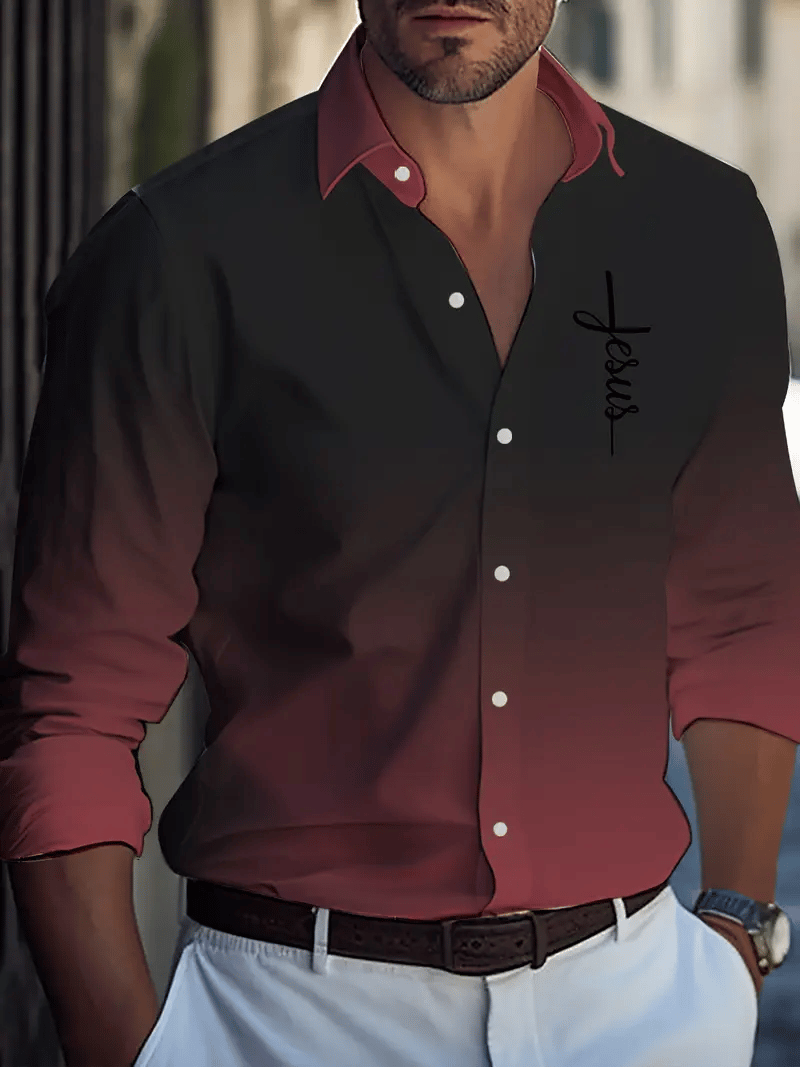 Men's Casual Solid Color Faith Long Sleeve Lapel Shirt