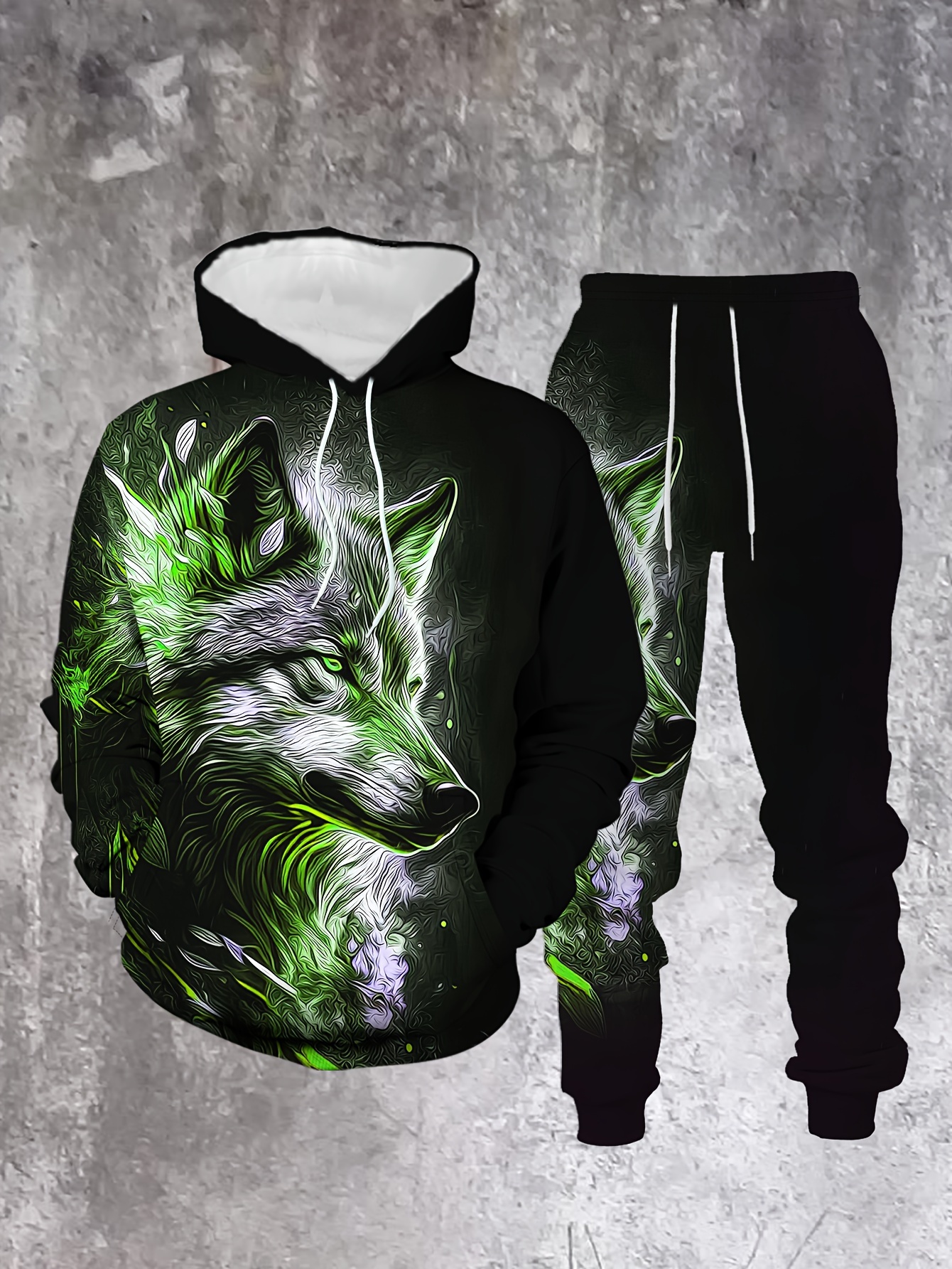 Men's Casual "The Wolf" Printed Hoodies Long Sleeved Sweatshirts & Sweatpants Two-Piece Set