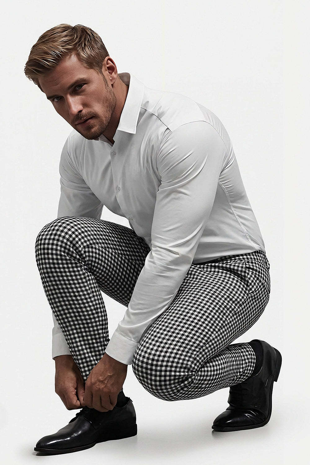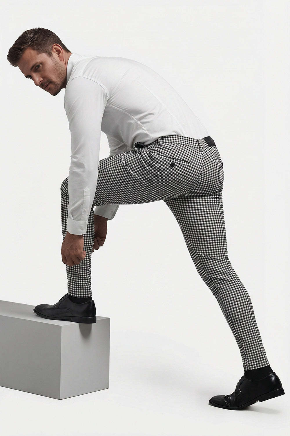 Invest in our men's black and white plaid chino plants today and experience the perfect combination of style, comfort, and quality.
