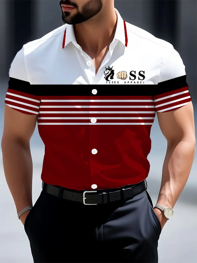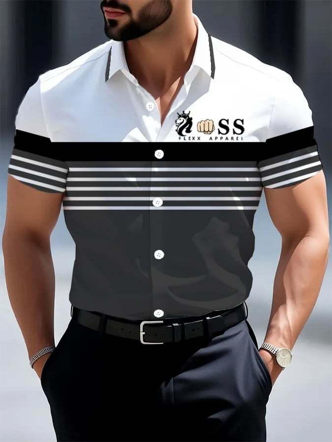 Men's Retro Letter Design Printed Business Short Sleeve Shirt