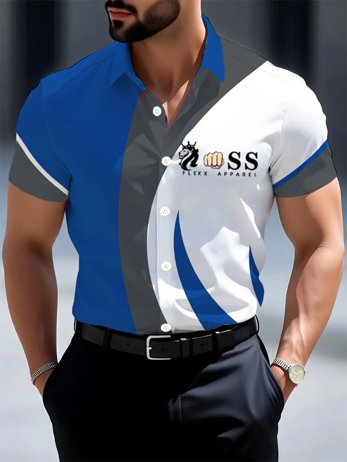 Men's Retro Letter Design Printed Business Short Sleeve Shirt
