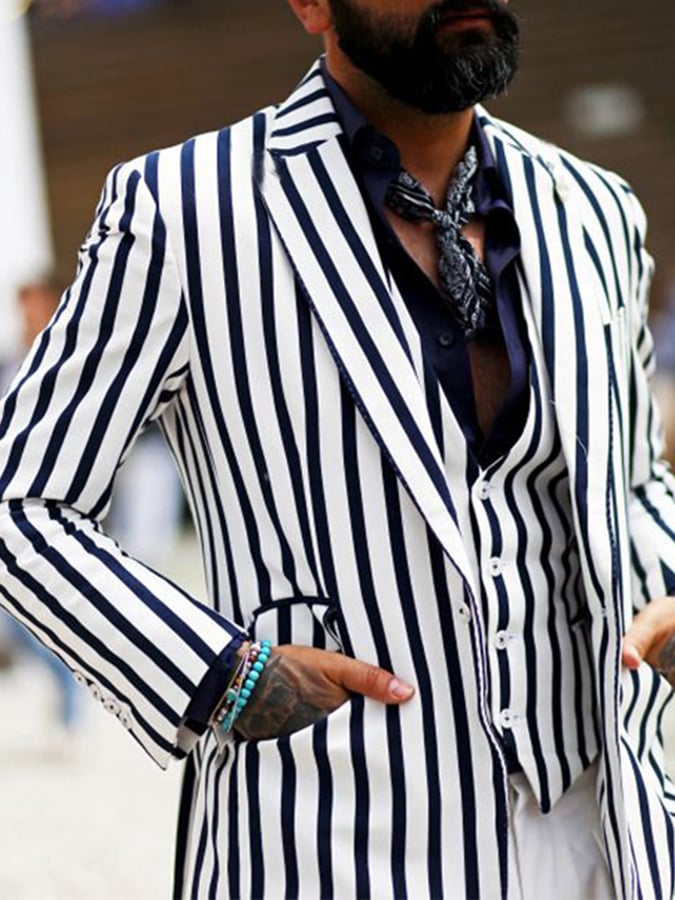 Men's Retro Single Breasted Striped Gentleman Business Suit Jacket