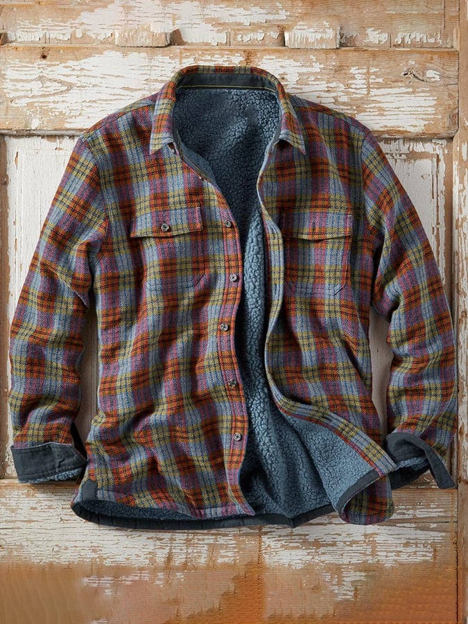Men's Retro Western Vintage Plaid Warm Jacket Coat