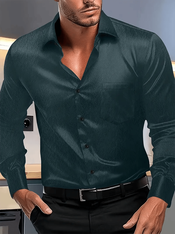 Men's Silk Business Luxury Design Printed Long Sleeve Pocket Shirt