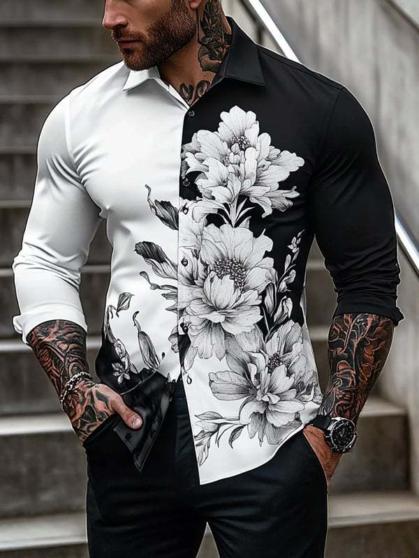 Men's Street Style Ethnic Floral Print Long Sleeve Shirt